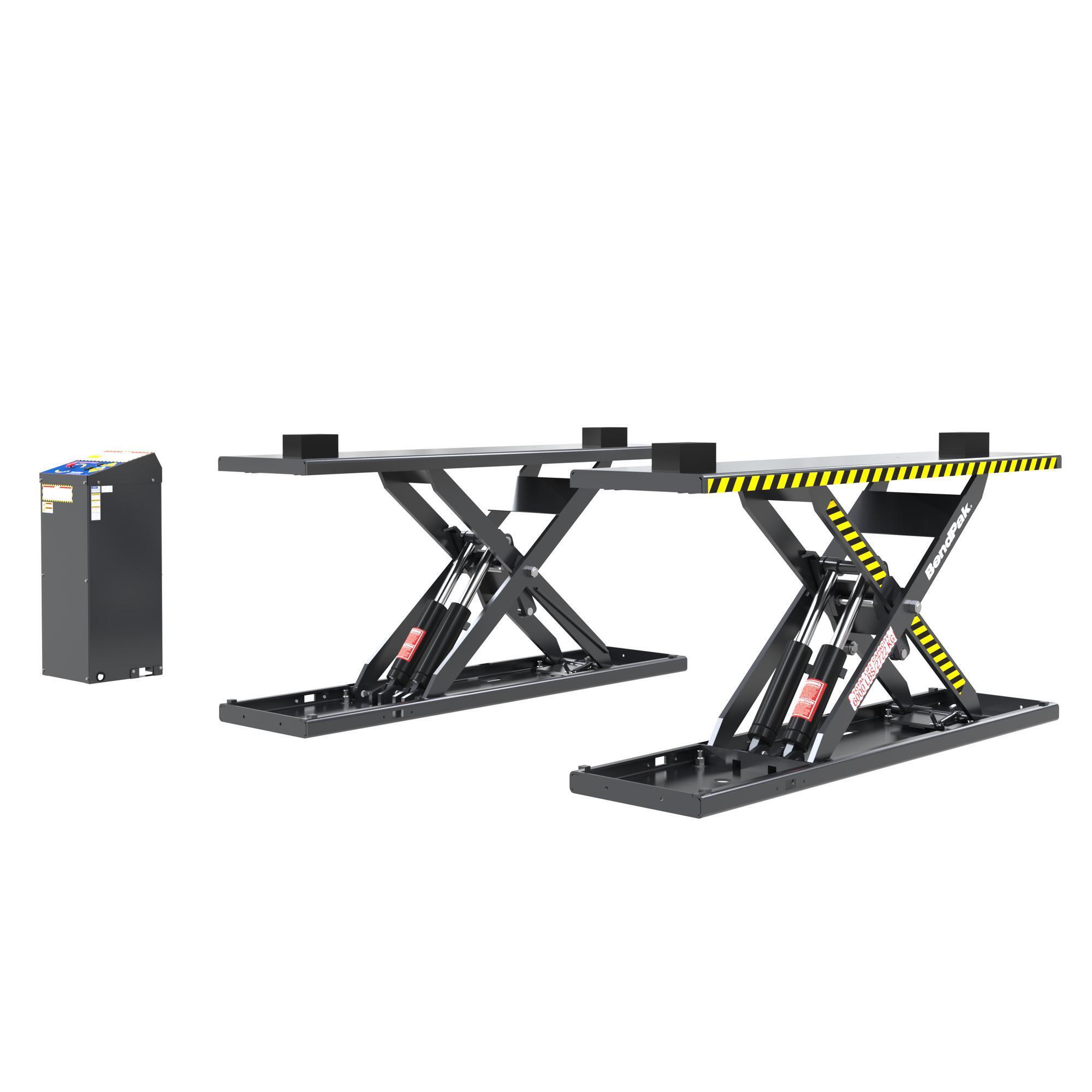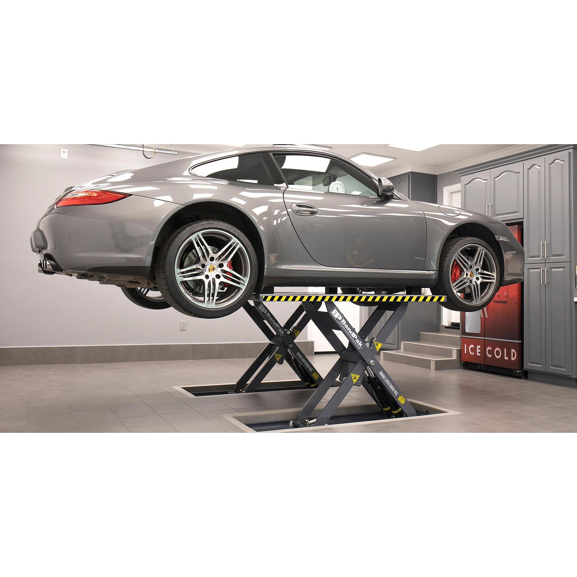 The BendPak MOUNT-208 is a 6,000-lb capacity scissor/low-rise lift designed for quick wheel service and alignment work. Scissor lifts require minimal ceiling height and are portable, making them perfect for home garages or mobile service operations.