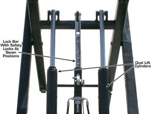 Engineered with a multi-position mechanical safety lock system that allows the lift to be parked securely at various working heights, relieving hydraulic pressure for long-term safety and stability.