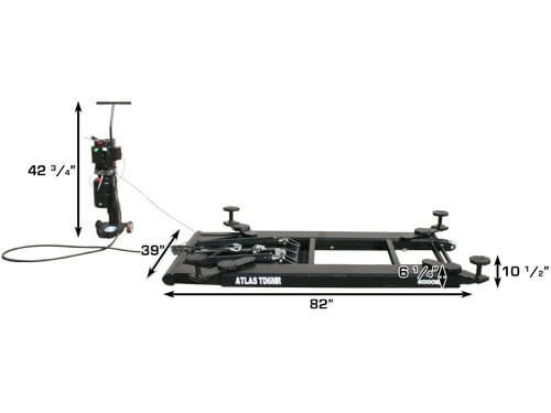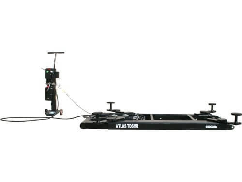 The Atlas ATTD-6MR is a 6,000-lb capacity scissor/low-rise lift designed for quick wheel service and alignment work. Scissor lifts require minimal ceiling height and are portable, making them perfect for home garages or mobile service operations.
