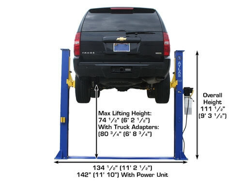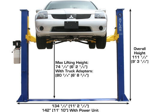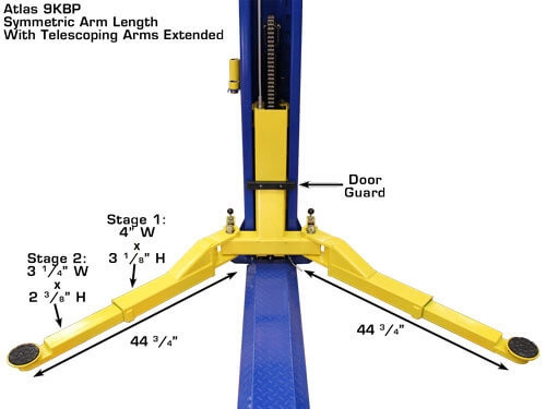 The Atlas XH-9KBPX is a 9,000-lb capacity 2-post lift designed for professional-grade vehicle service. 2-post lifts provide full undercarriage access for suspension, brake, and exhaust work. This is the standard lift type found in professional auto shops worldwide.