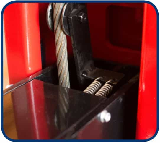 Features a redundant safety system designed for long-term storage. A spring-loaded, multi-position locking mechanism automatically engages at every ladder rung as the lift rises. Crucially, it includes a secondary Slack-Cable Safety System that acts as an emergency backup, instantly locking the runways in place if a cable were ever to go slack or fail. This dual-redundant design provides complete peace of mind.