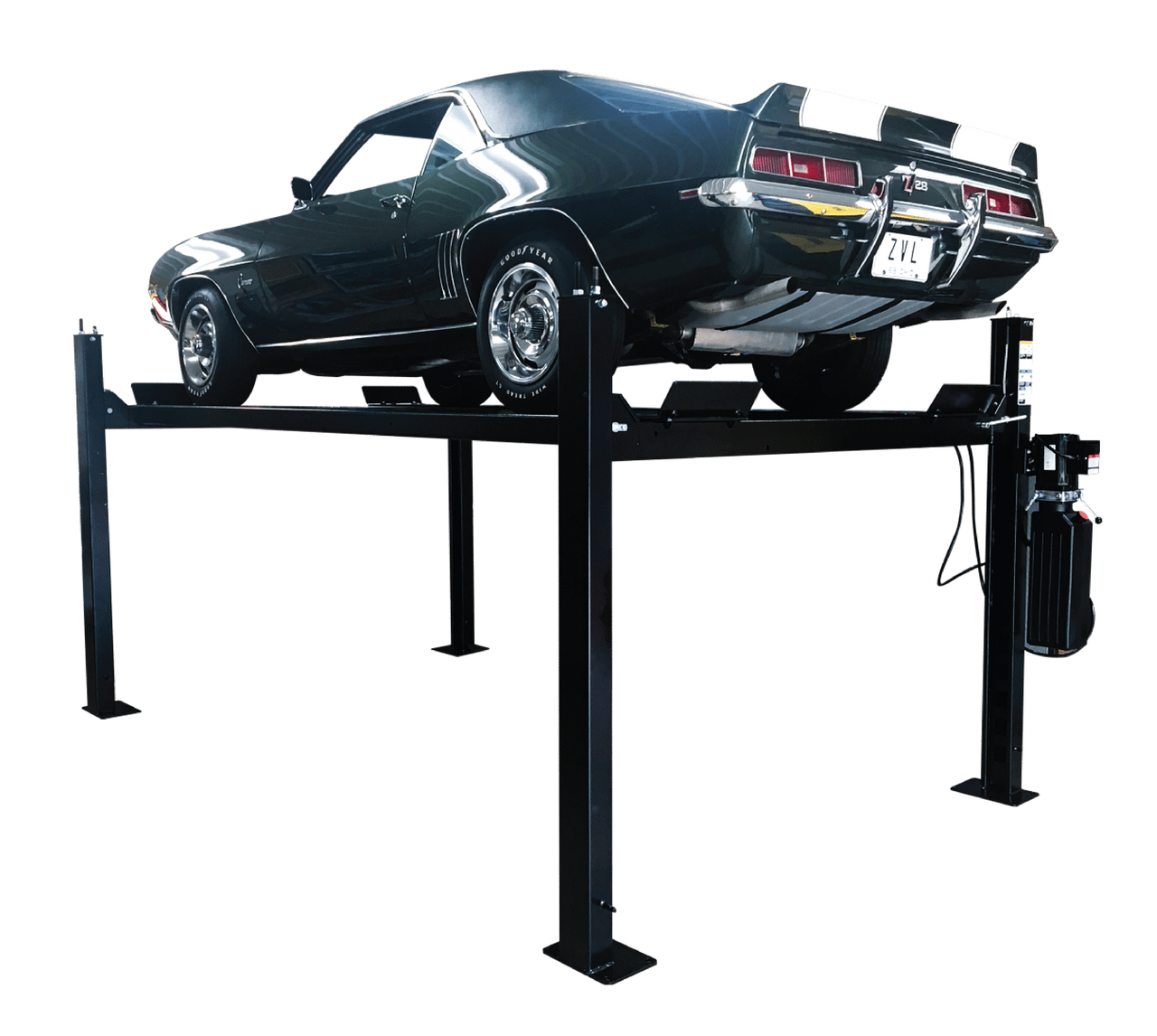 The Challenger CL4P7 is a 7,000-lb capacity 4-post lift designed for home garage storage and light maintenance. 4-post lifts are the easiest to install and safest to operate, making them ideal for enthusiasts who want to maximize their garage space or store a second vehicle.