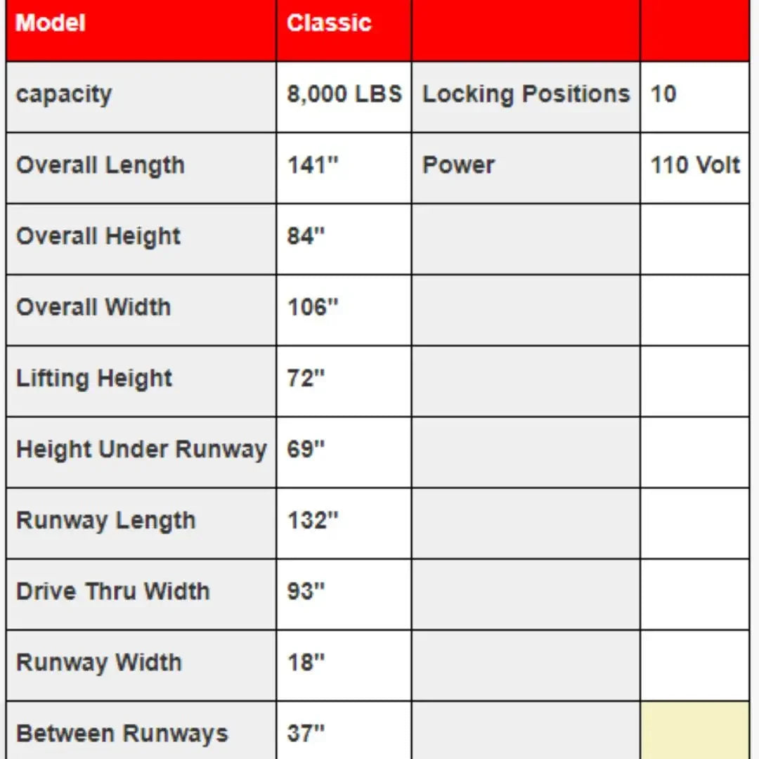 Triumph Classic 8,000 lb. Shorter Length 4 Post Car Lift